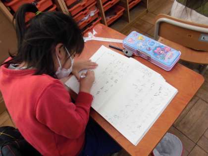 ものには名前がついていますが、仲間分けすることができます。いくつかのグループごとに考えるようにしました。まうz、「くだもの」のなかまを考えると、メロンやみかんなどが出てきました。次はさかなです。サバやマグロといったみんなも知っている魚の名前を発表してくれました。