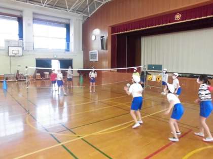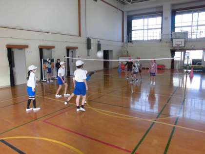 4年生は体育で「ソフトバレーボール」に取り組みました。バレーボールのようにネットをはさんで相手チームとラリーをしながら得点を競いますが、ボールが軽くて柔らかいです。スピードがきつくないので、みんな安心してレシーブしていました。