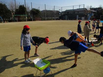 2年生は体育の時間に、「カラチャレ」に取り組みました。片足立ちでバランスをとるなどたくさんある中から一つ選んで、グループごとにお互いに出来ているか確かめながら取り組んでいました。「できた!」「なかなか難しいな」それぞれにつぶやきながら真剣に取り組んでいました。少しずつ取り組みながら体づくりをしていければと思います。