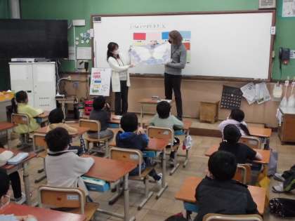 今日の外国語では、ALTに来てもらって英語の本を読んでもらいました。まず、いろんな色について英語の言い方を確認しました。その英語を覚えながら聞いていると、聞いたことのある色の英語が出てきました。その後、教室にあるいろんな色のものをお題に合わせて探しました。
