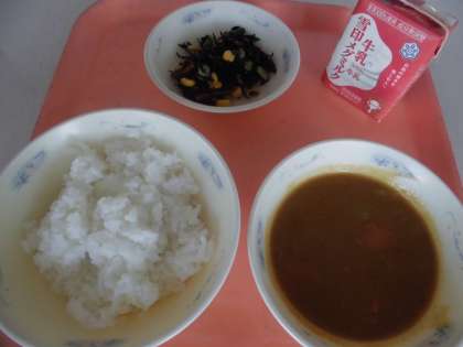 「『チキンカレー』は,とってもおいしかったです。『ひじきのソテー』は,コーンが入っていて,おいしかったです。」と,感想をくれました。