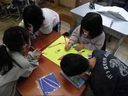 今日の午後からは係ごとに分かれて活動を進めました。まず、係の活動が重ならないようにスケジュールを調整しました。自分たちの係がいつ何をするか決まったら、早速準備に取り掛かりました。読み聞かせの練習をしたり飾りを作ったりしました。