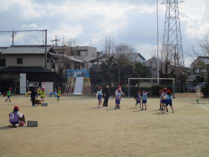 2年生は体育でパスゲームの学習をしています。ついついボールに寄って行きがちですが、「離れよう」「こっちにパス」とお互いに声を掛け合いながら、パスがつながるように考えてプレーをしていました。ゴールが決まったときにはチームで大喜びでした。