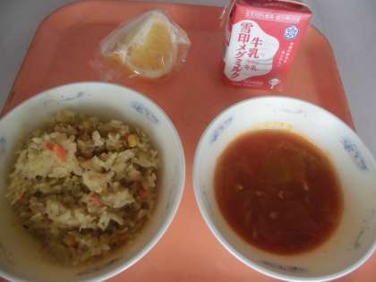 「『カレーピラフ』は,カレー味で,とってもおいしかったです。いっぱいおかわりしました。『トマトスープ』は,トマト味がおいしかったです。」と,感想をくれました。