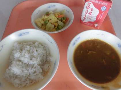 「『ポークカレー』は,とってもおいしかったです。いっぱいおかわりしました。『カラフルホットマリネ』は,とってもカラフルで,おいしかったです。」と,感想をくれました。