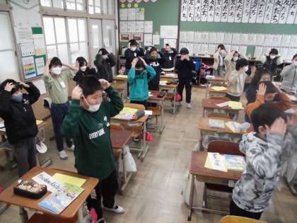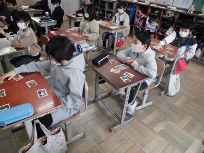 今日の外国語活動の時間には、「Who аre You?」という表現に慣れ親しめるようにいろんなゲームをしました。まず、リズムに合わせて、頭や肩、ひざなどをおさえてきます。ペースが速くなっても何とかついていこうとがんばっていました。その後、ヒントをもとにどんな動物なのか、尋ねたり答えたりしていました。