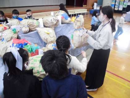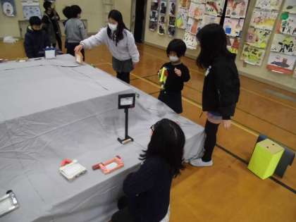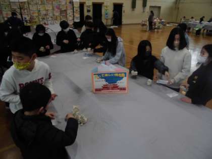 明日から体育館で作品展が始まります。今日は、各学年とも作品を搬入しました。がんばって作ってきた作品の紹介カードとともに展示しました。ふと周りを見ると、ほかの学年のいろんな作品があったので、早く見たいなぁと鑑賞の時間を楽しみにしていました。