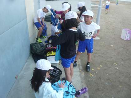 体育科では子どもたちが準備や後片付けを協力して行います。4年生では4月当初からスムーズに学習が行えるように素早く準備をしたり,次の人が使いやすいようにきちんと後片付けをすることができてて大変感心させられています。これからも,この姿勢を大切にして体育科の学習に取り組んでほしいと思います。