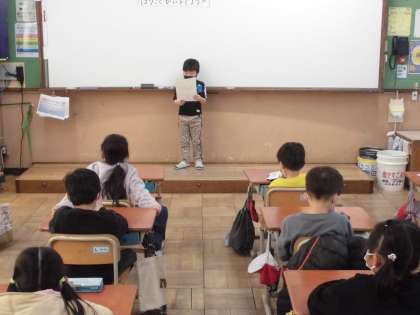生活科の時間には、おうちの人がニコニコしてくれるようにどんな作戦を実行したのか、報告会をしました。自分からお手伝いをしたこととか言われる前に宿題を済ませたといった報告がありました。これからも自分でできることを増やして、おうちの人をニコニコにしてほしいです。
