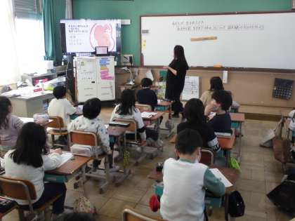 人はお母さんのおなかの中で成長して生まれます。どのようにして大きくなるのか、大きくなっていく様子などを調べて、分かったことをメモしました。だんだん大きくなっていくおなかの中の様子を見ながら、自分もこうだったのかなと想像を膨らませていました。