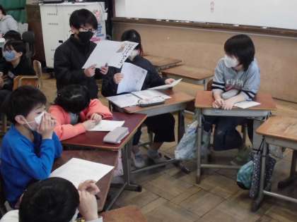 国語の時間には、地震や津波、火山の噴火といった自然災害が起こった時に備えて、どうしておくべきなのか考えたことを発表しました。いざという時に生活できるように、必要なものをそろえておくことや避難経路の確認など大切なことに気づけました。