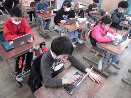 総合の時間には、安全なくらしに欠かせないことを調べたり考えたりしてロイロノートに入力しました。毎日のように事件や事故のニュースが流れてきますが、自分たちに何かできないか、みんなに呼び掛けることになりました。「交通ルールを守る」とか「火遊びをしない」といったことをおさらいしていました。