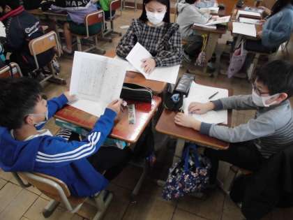 地震や火事などはいつ起こるか分かりません。国語の時間には、そんなもしもの時に備えて、どんなことを心がけておけばいいのか考えました。今日は、自分で調べたり考えたりしたことをまとめた文章を交流しました。お互いの考えを聞くことで「なるほど」と思ったり「分かりやすいなぁ」と思ったことなど感想も伝え合っていました。