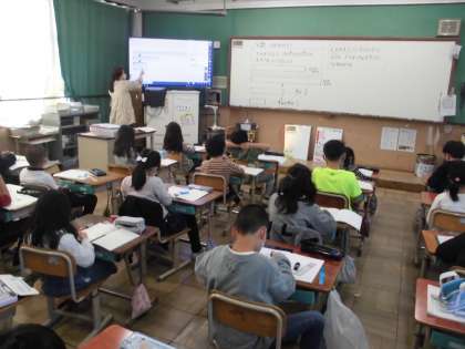算数では分数について学習しています。前は色紙を同じ大きさに折りましたが、今日は紙テープを使いました。半分に折ったりもう半分に折ったりして、同じ大きさの形を作りました。等しく分けることが大切で、4つに分けた1つ分をもとの大きさの「四分の一」ということを知りました。