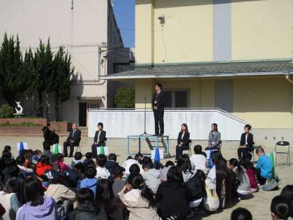 着任式では、着任された校長先生や教職員の話を最後まで静かに聞くことができました。