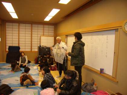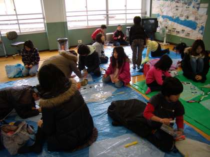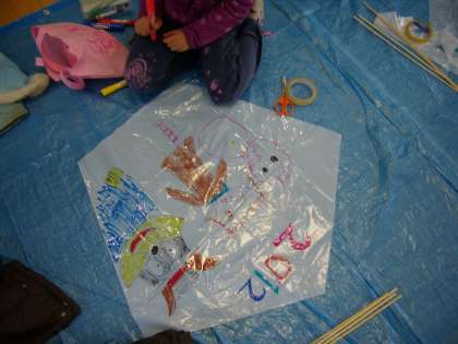 梅津北小学校のワールドルームとふれあいサロンで,PTA主催による凧作りが行われました。地域の方に指導を受けて,50人以上の子どもが楽しく凧作りをしていました。明日は天高く凧があがるといいですね。