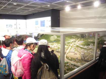 琵琶湖疏水記念館では,講師の先生のお話をしっかり聴き疏水の歴史について学ぶことができました。また,館内ではインクラインの仕組みを模型で確認したり,疏水が出来上がるまでの写真を見たりして,じっくりと先人の人々の知恵を感じることもできました。