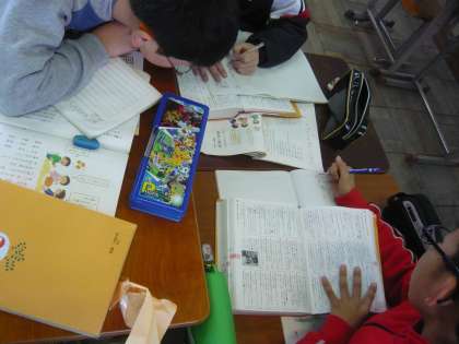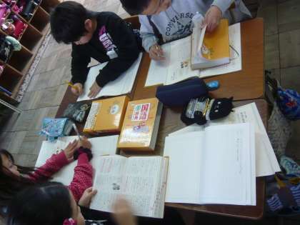 国語科では熟語の意味についての学習を行いました。子どもたちは,熟語には意味があって訓読みで読むとその意味が分かりやすいことに気付き,「流星ってのってた〜!!」と楽しそうにたくさんの熟語の意味を調べていました。