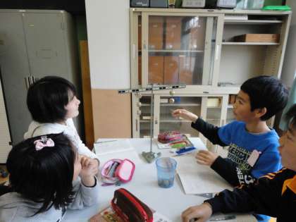 てこのつり合いについて実験しました。おもりの数や支点からのきょりを変えて,つり合うときのきまりを見つけました。