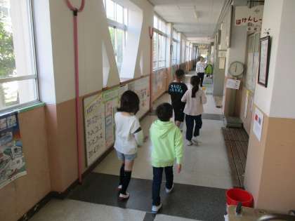 今日は2年生が1年生を案内する形で学校探検をしました。今日のために2年生は学校の中を紹介できるように、改めて調べていました。1年生に優しく教える姿は格好良かったです。1年生も初めてどんな場所かが分かり目を輝せていました。