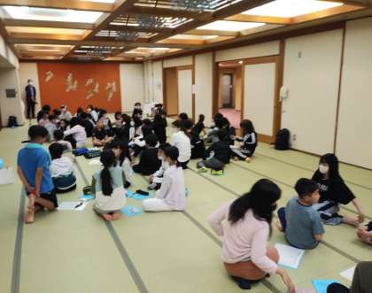 夕食が終わり、広い部屋でレクリエーションを楽しんでいます。