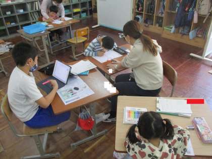 それぞれの課題に集中して取り組みました。できたところを「見て」とアピールする子もいました。頑張る姿がすてきでした。
