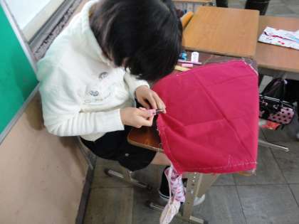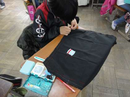 お弁当包み作りを始めました。裁縫の学習も2年目に入り,ずいぶん慣れてきた様子です。お気に入りのお弁当包みができたらいいですね。