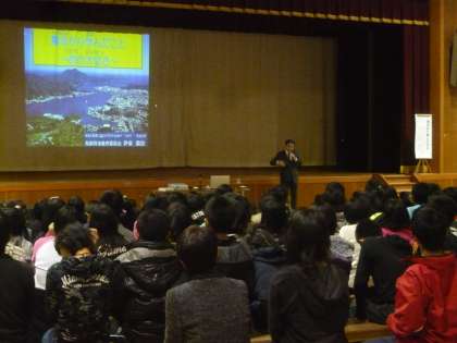 昨日,宮城県気仙沼市から講師の先生をお招きし震災についての講演会を開いていただきました。4年生から6年生の子どもたちは先生のお話をしっかり聴き,命について深く考えることが出来ました。これからの生活でも,今回の先生のお話をしっかり思い出し,お友達や家族の人との絆を大切して何事にも前向きに頑張ってほしいと思います。