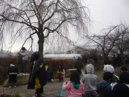 理科では季節と生き物(冬)の単元で,学年で有栖川の植物を観察しました。主に桜や雪柳の様子を観察し,子どもたちは「わ〜つぼみがある〜!!」と新しい芽が出てきている様子をしっかり見つけることが出来ました。