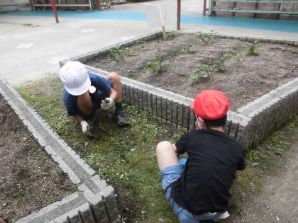 ゴミ0運動がありました。畑の周りやちびっこ広場の雑草抜きをしました。みんなで協力して学校を綺麗にすることができました。