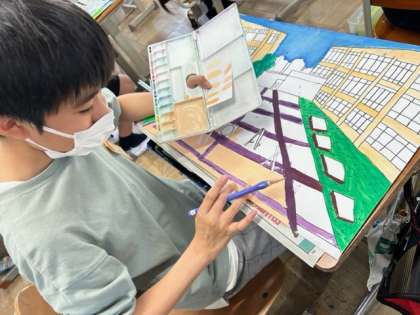 学校の中のお気に入りの風景や、覚えておきたい大切な風景を描きました。一人ひとりの思いのこもった素敵な作品ができました。最後まで丁寧に仕上げていました。
