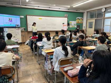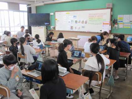 外国語「Welcome to Japan.」の学習の様子です。日本の魅力を知ったり相手に伝えたりするために、日本の行事の名前やできることなどについて、聞き取ったり紹介したりしました。