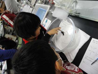 両生類の生態について観察・実験を通して調べました。アカハライモリを取り上げて,歩き方や泳ぎ方,呼吸の仕方について学びました。新しい発見があり盛り上がりました。最初は恐がっていた人も,最後には愛おしそうにイモリをながめていました。
