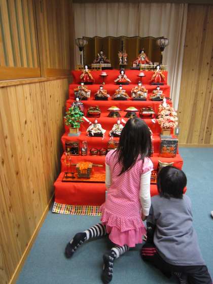 梅津北児童館では7段飾りのお雛人形を飾っています。