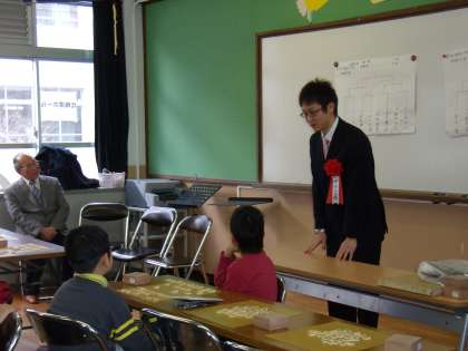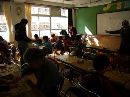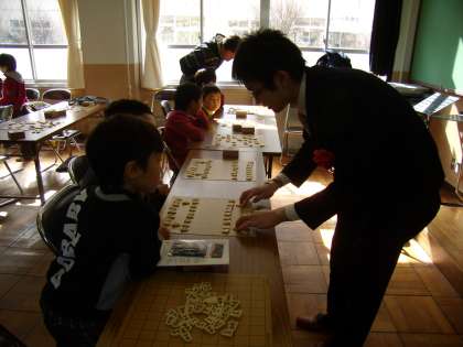 北梅津ホールで「将棋大会」が行われました。毎週水曜日にご指導いただいている清水先生をはじめとする先生方の他に,講師としてプロ将棋 山崎隆之七段をお招きして将棋を通して学んだことのお話を聞きました。将棋が強くなるには「ありがとうございます」「ごめんなさい」がすぐに言えるようにならなければならないというお話をしてくださいました。トーナメント形式で16人が試合をし,負けた子ども達は山崎七段に将棋を教えてもらっていました。何事にも感謝の気持ちをもたなければいけませんね。この大会の準備等をして下さった先生方,ありがとうございました。