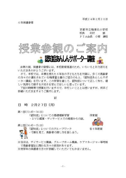 6年授業参観のご案内