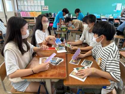 図画工作では、鑑賞の学習に取り組んできました。まずは、アートカードで美術作品にふれ、感じたことを自由に交流しました。次に、ゴッホの「星月夜」とモネの「ジヴェルニーの積みわら」の2つの作品のよさや美しさをたくさん考えました。最後に、筆あとに着目して、オリジナルの空を描いてみました。交流を通して、感じ方や見方を深めることができました。