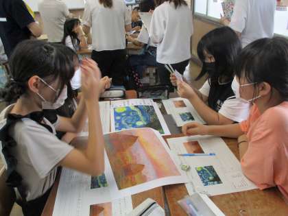 ゴッホの「星月夜」とモネの「ジヴェルニーの積みわら」を鑑賞して、子どもたちが感じたことを紹介します。