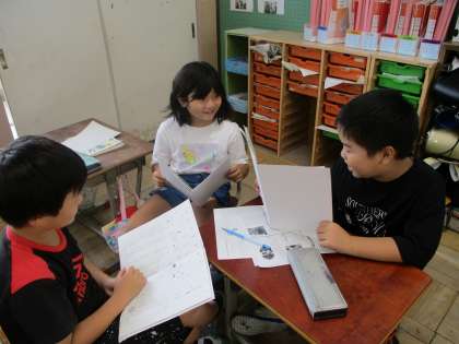 国語の学習で取り組んでいる「どうぶつ園のじゅうい」ではじゅういさんの仕事を知って思ったことや考えたことを交流しました。自分とは違う友達の意見や考えをグループになって一生懸命聞く姿もありました。交流後は、改めてじゅういさんの仕事についてどう思ったのか文章に書きました。たくさん文章を書くことができました。
