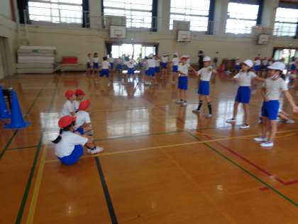 本日は4年生と「京炎そでふれ」の合同体育をしました。先週、大学生に教えていただいたポイントを意識しながら踊ることができました。また、後半は4年生が中心になって3年生に教えてくれました。かっこいい4年生の姿を見ながら一生懸命頑張っていました。