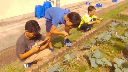 ブロッコリーの成長の様子を観察し、ロイロノートに記録を残しています。1週間前とどんな風に変わったかな?