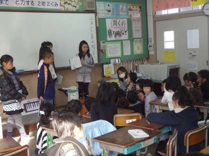 昨日から2日間,すいせん読書週間の取り組みとして4年生が2年生にブックトークをしにやってきてくれました。