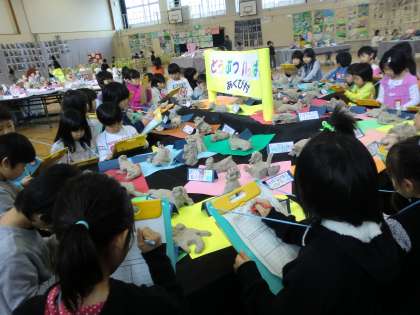 「どうぶついっぱい あくび村」という土粘土で作った作品を展示しました。