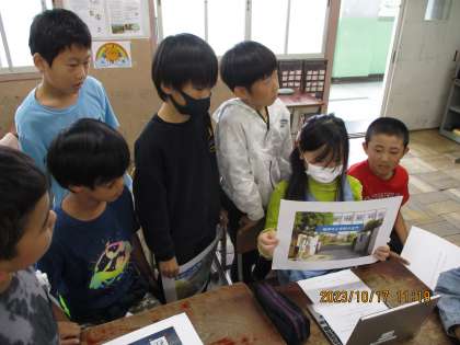 総合的な学習の時間では、17日に京北小中学校の4年生とオンラインで交流会をしました。今回は、自己紹介と学校・地域紹介をしました。みんな緊張しながらも、グループで準備してきたことを落ち着いて伝えることができていました。また、京北小中学校についてもいろいろと知ることができたようで、とても嬉しそうでした。