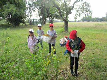 2年生といっしょに嵐山東公園で秋見つけをしました。