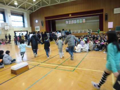 出し物は、1・2年生で「だれだっておたんじょうび」の替え歌を歌いました。