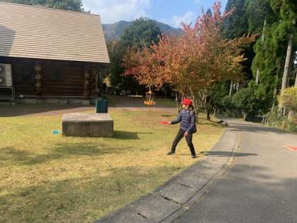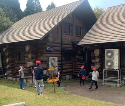 フライングディスクゴルフに取り組みました。思ったようにディスクを飛ばすのは難しく、苦戦しながらも楽しく活動しました。
