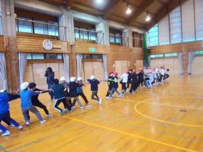 学年全員でのレクリエーションの時間です。全力で綱引きやリレーを楽しんでいます。