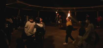 キャンプファイヤーで盛り上がりました。ゲームをしたり、フォークダンスをしたりしながら、最後の夜を楽しみました。