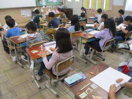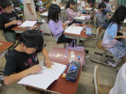 算数の学習では直線の数に着目して仲間分けを行いました。